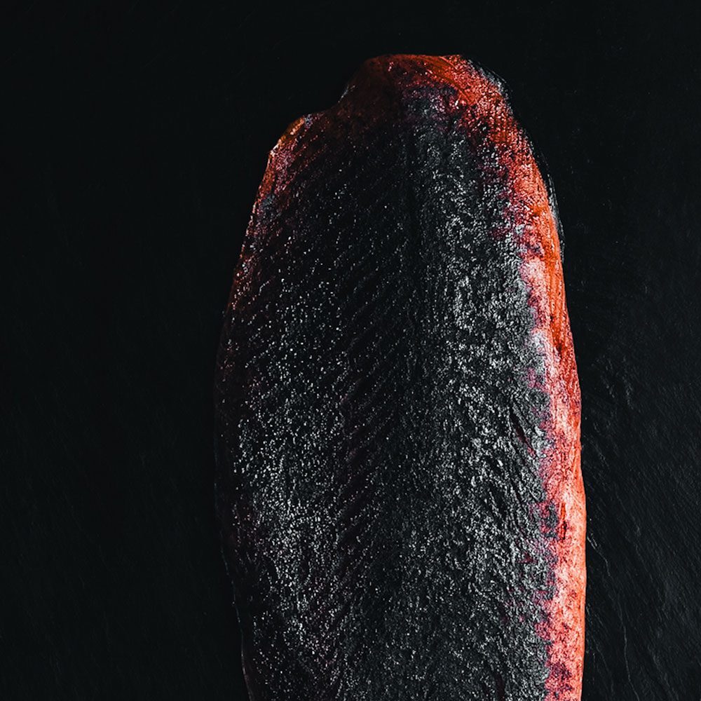 Land-based harvest → fillet → five-day dry age on bone → cold smoke.